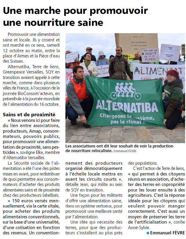 avec nos partenaires SQY en transition CCFD-Terre Solidaire à Viroflay, à Versailles, Terre de Liens Ile-de-France, Réseau AMAP Île de France